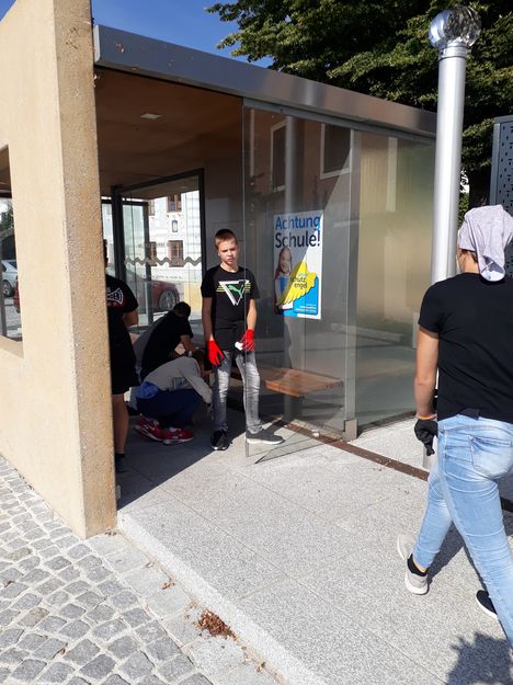 Nachdem die Schüler als Einstieg einen Film zum Thema „Was geschieht mit unserem Müll“ angesehen hatten, gingen 2 Gruppen in den Ort, um achtlos weggeworfenen Müll zu sammeln, der danach in wiederverwertbare und nicht mehr nutzbare Stoffe sortiert wurde.